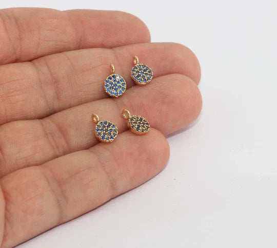 24 Carat Gold Plated Dark Blue Zircon Stone Shiny Round Charms Round Pendant. Dimensions: 7x10mm Price is per piece. 24 carat gold plated on brass. A Quality product does not rust or tarnish. Do not contact with chemicals and perfumes for long-term use. Passed all tests does not contain harmful materials. Colors may vary depending on screen settings and ambient light.