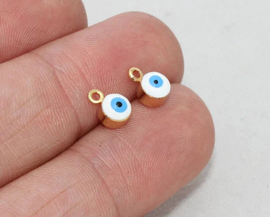 Shiny Gold Plated Evil Eye Bead Necklace Pendant Bracelet Spacer Apparatus Halo Pendant Dimensions: 5x8mm. Package price. There are 5 products in 1 package. 24 carat gold plated on brass. A Quality product resistant to rust and tarnishing. Do not contact with chemicals and perfumes for long-term use. Passed all tests does not contain harmful materials. Colors may vary depending on screen settings and ambient light.