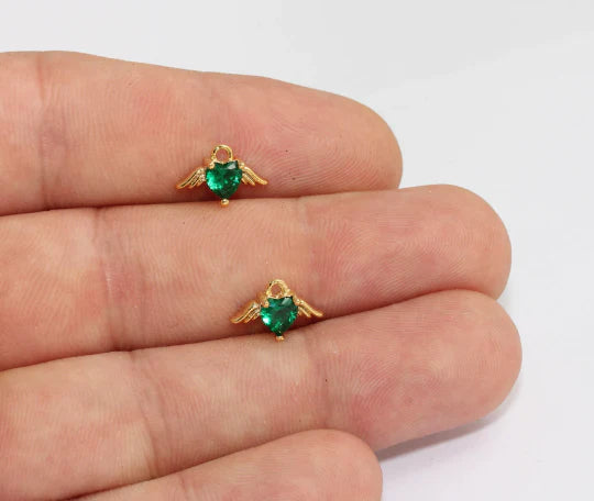 24K Gold Plated Green Zircon Stone Angel Charms Angel Pendant. Dimensions: 8x13mm Price is per piece. 24K gold plated on brass. A Quality product does not rust or tarnish. Do not contact with chemicals and perfumes for long-term use. Passed all tests does not contain harmful materials. Colors may vary depending on screen settings and ambient light.