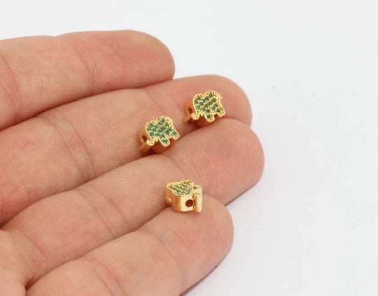24 Carat Gold Plated Green Zircon Stone Shiny Elephant Charms Elephant Pendant. Dimensions: 7x10mm Price is per piece. 24 carat gold plated on brass. A Quality product does not rust or tarnish. Do not contact with chemicals and perfumes for long-term use. Passed all tests does not contain harmful materials. Colors may vary depending on screen settings and ambient light.
