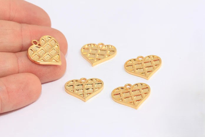 24K Gold Plated Heart Pendant Square Embossed Heart. Dimensions: 19x19mm Price is per piece. 24K gold plated on brass. A Quality product resistant to rust and tarnishing. Do not contact with chemicals and perfumes for long-term use. Passed all tests does not contain harmful materials. Colors may vary depending on screen settings and ambient light.