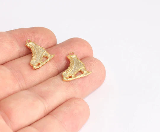 24 Carat Gold Plated Ice Skate Pendant Skate Charm. Dimensions: 18mm Price is per piece. 24 carat gold plated on brass. A Quality product resistant to rust and tarnishing. For long-term use do not contact with chemicals and perfumes. Passed all tests does not contain harmful materials. Colors may vary depending on screen settings and ambient light.
