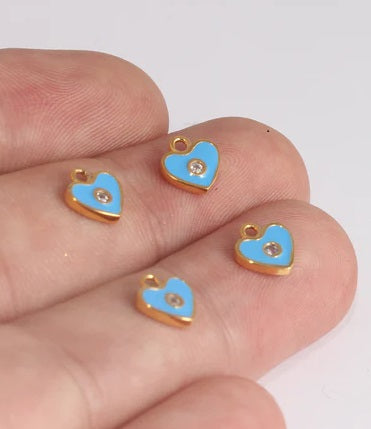 Shiny Gold Plated Light Blue Enameled Zircon Stone Dangling CZ Heart Pendant Dimensions: 8mm Price is per piece. 24 carat gold plated on brass. A Quality product resistant to rust and tarnishing. Do not contact with chemicals and perfumes for long-term use. It has passed all tests and does not contain materials harmful to health. Colors may vary depending on screen settings and ambient light.