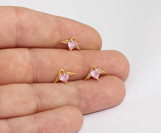 24K Gold Plated Light Pink Zircon Stone Angel Charms Angel Pendant. Dimensions: 8x13mm Price is per piece. 24K gold plated on brass. A Quality product does not rust or tarnish. Do not contact with chemicals and perfumes for long-term use. Passed all tests does not contain harmful materials. Colors may vary depending on screen settings and ambient light.