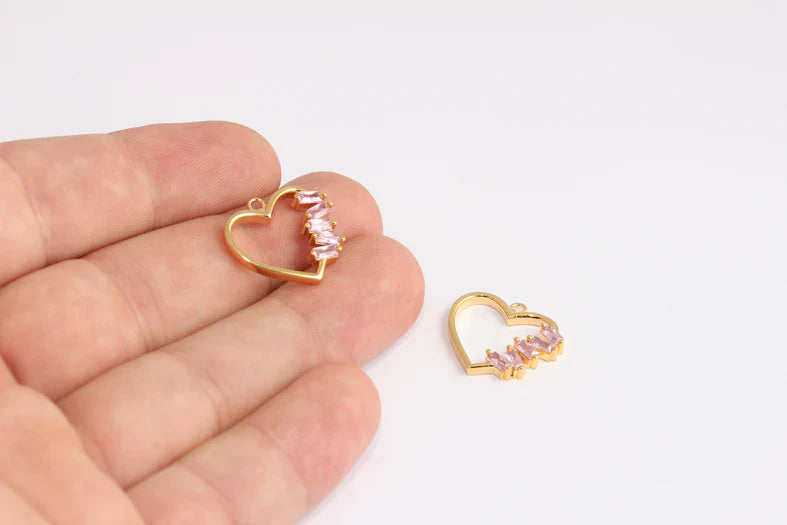 24K Gold Plated Light Pink Zircon Stone Shiny Heart Charms Heart Pendant. Dimensions: 18x20mm Price is per piece. 24K gold plated on brass. A Quality product resistant to rust and tarnishing. Do not contact with chemicals and perfumes for long-term use. Passed all tests does not contain harmful materials. Colors may vary depending on screen settings and ambient light.