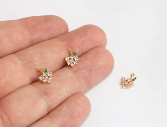 24K Gold Plated Lilac Green Zircon Stone Shiny Grape Charms Grape Pendant. Dimensions: 9x12mm Price is per piece. 24K gold plated on brass. A Quality product does not rust or tarnish. Do not contact with chemicals and perfumes for long-term use. Passed all tests does not contain harmful materials. Colors may vary depending on screen settings and ambient light.