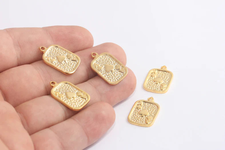 24 Carat Gold Plated Playing Card Playing Card Spade Ace Pendant Poker Charm. Dimensions: 14x23mm Price is per piece. 24 carat gold plated on brass. A Quality product resistant to rust and tarnishing. Do not contact with chemicals and perfumes for long-term use. Passed all tests does not contain harmful materials. Colors may vary depending on screen settings and ambient light.