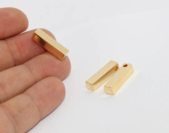 24 Carat Gold Plated Rectangular Bar Pendant. Dimensions: 5x20mm Price is per piece. 24 carat gold plated on brass. A Quality product resistant to rust and tarnishing. For long-term use do not contact with chemicals and perfumes. Passed all tests does not contain harmful materials. Colors may vary depending on screen settings and ambient light.