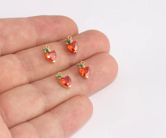 24K Gold Plated Shiny Red Green Zircon Stone Strawberry Pendant Strawberry Charms. Dimensions: 6.5x12mm Price is per piece. 24K gold plated on brass. A Quality product does not rust or tarnish. Do not contact with chemicals and perfumes for long-term use. Passed all tests does not contain harmful materials. Colors may vary depending on screen settings and ambient light.