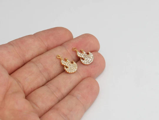 24K Gold Plated White Blue Zircon Stone Shiny Flame Charms Flame Pendant. Dimensions: 10x17mm Price is per piece. 24K gold plated on brass. A Quality product does not rust or tarnish. Do not contact with chemicals and perfumes for long-term use. Passed all tests does not contain harmful materials. Colors may vary depending on screen settings and ambient light.