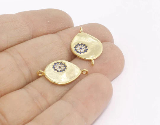 24K Gold Plated White Navy Blue Zircon Stone Evil Eye Charms Evil Eye Pendant. Dimensions: 14x22mm Price is per piece. 24K gold plated on brass. A Quality product does not rust or tarnish. Do not contact with chemicals and perfumes for long-term use. Passed all tests does not contain harmful materials. Colors may vary depending on screen settings and ambient light.