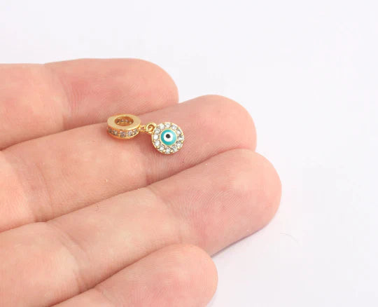 24k Gold Plated White Zircon Stone Evil Eye Dangle Charms KUZ1247