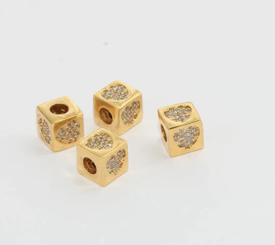 24K Gold Plated White Zircon Stone Shiny Heart Charms Heart Cube Pendant. Dimensions: 8x8mm Price is per piece. 24K gold plated on brass. A Quality product resistant to rust and tarnishing. Do not contact with chemicals and perfumes for long-term use. Passed all tests does not contain harmful materials. Colors may vary depending on screen settings and ambient light.