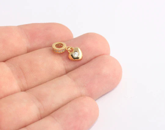 24 Carat Gold Plated White Zircon Stone Shiny Heart Dangle Charms Heart Dangle Necklace Pendant. Dimensions: 2.5x7mm Price is per piece. 24 carat gold plated on brass. A Quality product does not rust or tarnish. Do not contact with chemicals and perfumes for long-term use. Passed all tests does not contain harmful materials. Colors may vary depending on screen settings and ambient light.