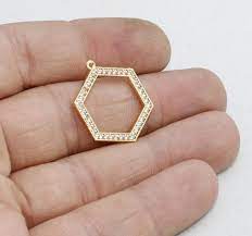24 Carat Gold Plated White Zircon Stone Hexagon Charms Hexagon Pendant. Dimensions: 20mm Price is per piece. 24 carat gold plated on brass. A Quality product does not rust or tarnish. Do not contact with chemicals and perfumes for long-term use. Passed all tests does not contain harmful materials. Colors may vary depending on screen settings and ambient light.