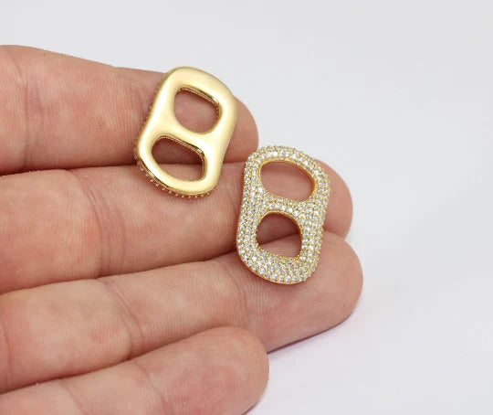24 Carat Gold Plated White Zircon Stone Shiny Opener Charms Opener Pendant. Dimensions: 16x27mm Price is per piece. 24 carat gold plated on brass. A Quality product resistant to rust and tarnishing. Do not contact with chemicals and perfumes for long-term use. Passed all tests does not contain harmful materials. Colors may vary depending on screen settings and ambient light.