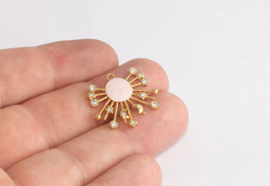 24K Gold Plated White Zircon Stone Bright Pink Enamel Stone Galaxy Charms Galaxy Pendant. Dimensions: 22x26mm Price is per piece. 24K gold plated on brass. A Quality product resistant to rust and tarnishing. Do not contact with chemicals and perfumes for long-term use. Passed all tests does not contain harmful materials. Colors may vary depending on screen settings and ambient light.