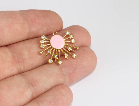 24K Gold Plated White Zircon Stone Red Enamel Galaxy Charms Galaxy Pendant. Dimensions: 22x26mm Price is per piece. 24K gold plated on brass. A Quality product resistant to rust and tarnishing. Do not contact with chemicals and perfumes for long-term use. Passed all tests does not contain harmful materials. Colors may vary depending on screen settings and ambient light.