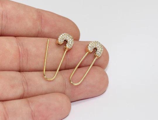 24 Carat Gold Plated White Zircon Stone Shiny Safety Pin Safety Pin. Dimensions: 10x32mm Price is per piece. 24 carat gold plated on brass. A Quality product resistant to rust and tarnishing. Do not contact with chemicals and perfumes for long-term use. Passed all tests does not contain harmful materials. Colors may vary depending on screen settings and ambient light.