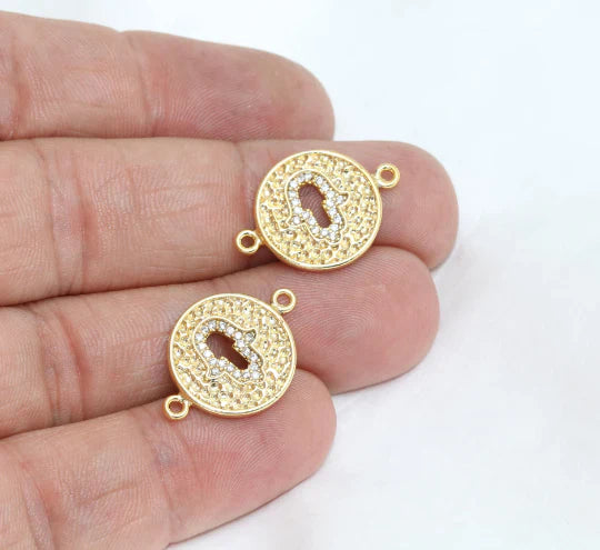 24 carat gold plated white zircon stone shiny medallion inside Fatima hand charms medallion inside Fatima hand pendant. Dimensions: 15x22mm Price is per piece. 24 carat gold plated on brass. A quality product resistant to rust and tarnishing. Do not contact with chemicals and perfumes for long-term use. Passed all tests does not contain harmful materials. Colors may vary depending on screen settings and ambient light.