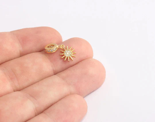 24k Gold Plated White Zircon Stone Sun Dangle Charms KUZ1425