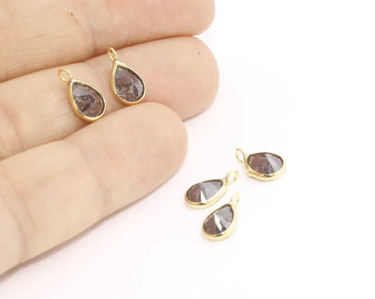 24 Carat Gold Plated Zircon Stone Black Drop Charms Drop Pendant. Dimensions: 6x11mm Price is per piece. 24 carat gold plated on brass. A Quality product does not rust or tarnish. Do not contact with chemicals and perfumes for long-term use. Passed all tests does not contain harmful materials. Colors may vary depending on screen settings and ambient light.