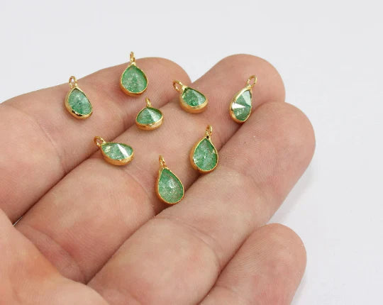 24 Carat Gold Plated Zircon Stone Green Drop Charms Drop Pendant. Dimensions: 6x11mm Price is per piece. 24 carat gold plated on brass. A Quality product does not rust or tarnish. Do not contact with chemicals and perfumes for long-term use. Passed all tests does not contain harmful materials. Colors may vary depending on screen settings and ambient light.