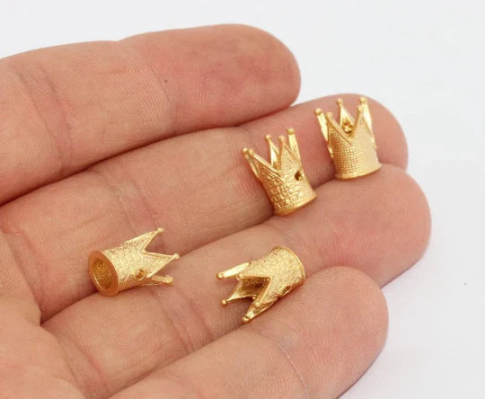 24k Matte Gold Beads, Crown Jewelry, King Crown, Crown Beads Pendant. Dimensions: 7x11mm Price for 5 Pieces. 24 carat gold plated on brass. A Quality product, resistant to rust and tarnishing. Do not contact with chemicals and perfumes for long-term use. Passed all tests, does not contain harmful materials. Colors may vary depending on screen settings and ambient light.