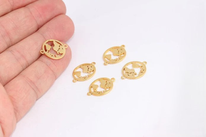 24K Matte Gold Plated Globe Shaped Necklace Spacer Globe Bracelet Anklet End Globe Globe Charm. Dimensions: 14x19mm Price per piece. 24K gold plated on brass. A Quality product resistant to rust and tarnishing. Do not contact with chemicals and perfumes for long-term use. Passed all tests does not contain harmful materials. Colors may vary depending on screen settings and ambient light.