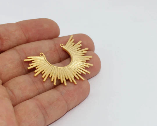 24K Matte Gold Plated Moon Pendant Half Moon. Dimensions: 30x40mm Price is per piece. 24K gold plated on brass. A Quality product resistant to rust and tarnishing. Do not contact with chemicals and perfumes for long-term use. Passed all tests does not contain harmful materials. Colors may vary depending on screen settings and ambient light.