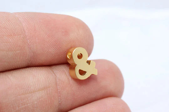 Matte Gold Plated Punctuation Marked Pendant Letter Pendant Ampersand Pendant Spacer Bracelet Necklace Hole Diameter: 2mm Dimensions: 8x10mm Price is per piece. 24 carat gold plated on brass. A quality product resistant to rust and tarnishing. Do not contact with chemicals and perfume for long-term use. It has passed all tests does not contain materials harmful to health. Colors may vary depending on screen settings and ambient light.