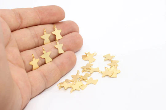 Matte Gold Plated Little Angel Necklace and Bracelet End Dimensions: 10x13mm Price is per piece. 24 carat gold plated on brass. A quality product resistant to rust and tarnishing. Do not contact with chemicals and perfumes for long-term use. Passed all tests does not contain harmful materials. Colors may vary depending on screen settings and ambient light.