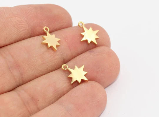 Shiny Gold Plated North Star Pendant Dimensions: 10x13mm. Package price. There are 5 products in 1 package. 24 carat gold plated on brass. A Quality product resistant to rust and tarnishing. Do not contact with chemicals and perfumes for long-term use. Passed all tests does not contain harmful materials. Colors may vary depending on screen settings and ambient light.