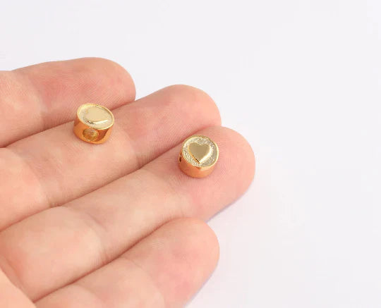 Shiny Gold Plated Embossed Internal Hole Heart Pendant Spacer Bead Dimensions: 8mm. Package price. There are 5 products in 1 package. 24 carat gold plated on brass. A Quality product resistant to rust and tarnishing. Do not contact with chemicals and perfumes for long-term use. Passed all tests does not contain harmful materials. Colors may vary depending on screen settings and ambient light.