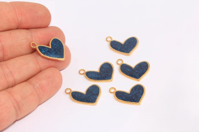 24 Carat Shiny Gold Plated Blue Enameled Dangle Heart Necklace and Jewelry Apparatus Dimensions: 20 mm Price is per piece. 24 Carat gold plated on brass. A Quality product resistant to rust and tarnishing. Do not contact with chemicals and perfumes for long-term use. Passed all tests does not contain harmful materials. Colors may vary depending on screen settings and ambient light.