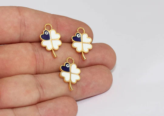 24k Shiny Gold Flower Charms Evil Eye Flower Heart Pendant. Dimensions: 13x22mm Price is per piece. 24 carat gold plated on brass. A Quality product resistant to rust and tarnishing. Do not contact with chemicals and perfumes for long-term use. Passed all tests does not contain harmful materials. Colors may vary depending on screen settings and ambient light.
