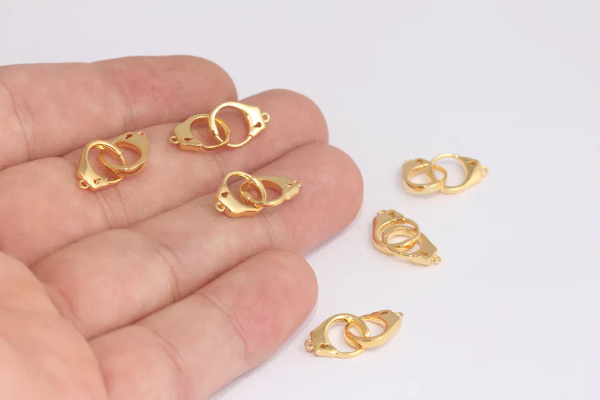 24K Shiny Gold Cuff Charms Cuff Shaped Bracelet Link Piece. Dimensions: 10mm Price is per piece. 24K gold plated on brass. A Quality product resistant to rust and tarnishing. Do not contact with chemicals and perfumes for long-term use. Passed all tests does not contain harmful materials. Colors may vary depending on screen settings and ambient light.