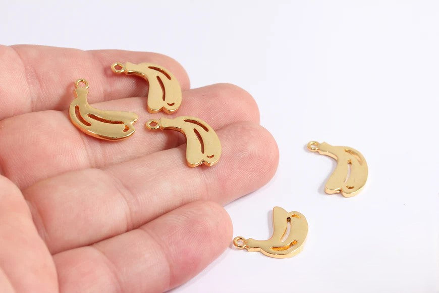 24k Shiny Gold Plated Banana Shaped Pendant. Dimensions: 14x21mm Price is per piece. 24 carat gold plated on brass. A Quality product resistant to rust and tarnishing. For long-term use do not contact with chemicals and perfumes. Passed all tests does not contain harmful materials. Colors may vary depending on screen settings and ambient light.