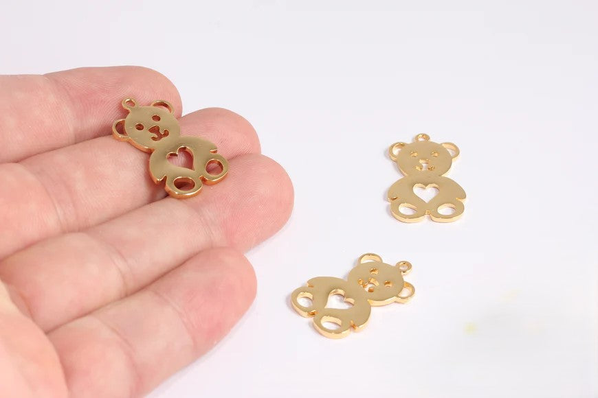24K Shiny Gold Plated Bear Figured Pendant Teddy Bear Pendant with Heart in the Middle. Dimensions: 16x26mm Price is per piece. 24K gold plated on brass. A Quality product resistant to rust and tarnishing. Do not contact with chemicals and perfumes for long-term use. Passed all tests does not contain harmful materials. Colors may vary depending on screen settings and ambient light.