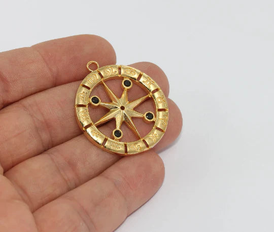 24K Shiny Gold Plated Black Stone Zodiac Sign Pendant Astrology Charm. Dimensions: 32x36mm Price is per piece. 24K gold plated on brass. A Quality product resistant to rust and tarnishing. Do not contact with chemicals and perfumes for long-term use. Passed all tests does not contain harmful materials. Colors may vary depending on screen settings and ambient light.