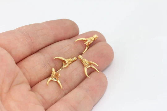24K Shiny Gold Plated Claw Shaped Pendant Claw Charm. Dimensions: 11x16mm Price is per piece. 24K gold plated on brass. A Quality product resistant to rust and tarnishing. Do not contact with chemicals and perfumes for long-term use. Passed all tests does not contain harmful materials. Colors may vary depending on screen settings and ambient light.