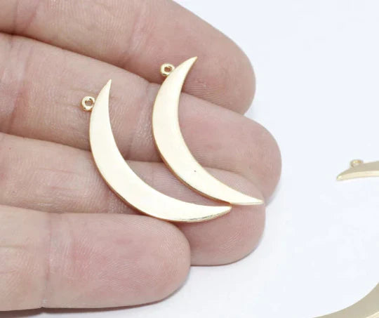 24K Shiny Gold Plated Crescent Moon Pendant. Dimensions: 13x40mm Price is per piece. 24K gold plated on brass. A Quality product resistant to rust and tarnishing. Do not contact with chemicals and perfumes for long-term use. Passed all tests does not contain harmful materials. Colors may vary depending on screen settings and ambient light.