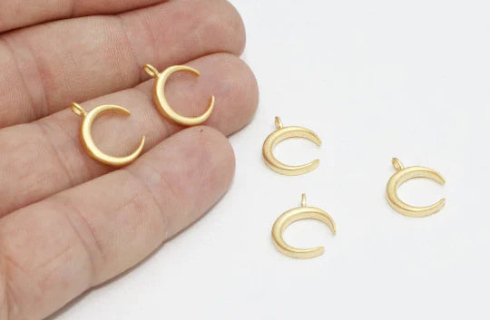 Matte Gold Plated Crescent Moon Pendant Dimensions: 12x16mm Price is per piece. 24 carat gold plated on brass. A quality product resistant to rust and tarnishing. Do not contact with chemicals and perfumes for long-term use. It has passed all tests and does not contain harmful materials. Colors may vary depending on screen settings and ambient light.