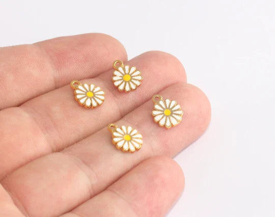 Shiny Gold Plated White Enamel Daisy Pendant Bracelet Bangle Pendant Dimensions: 9x12mm. Package price. There are 3 products in 1 package. 24 carat gold plated on brass. A Quality product resistant to rust and tarnishing. Do not contact with chemicals and perfumes for long-term use. Passed all tests does not contain harmful materials. Colors may vary depending on screen settings and ambient light.