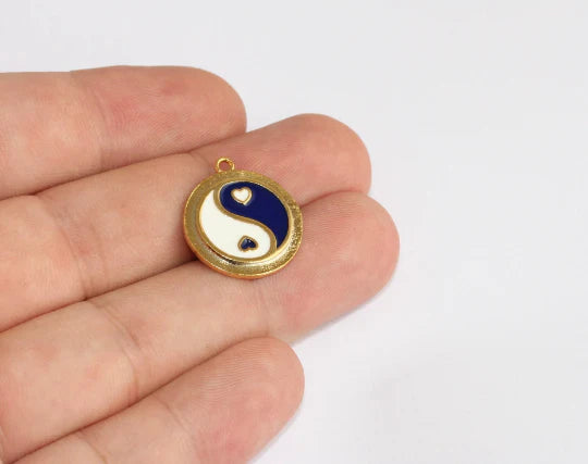 24K Shiny Gold Plated Double Color Yin Yang Pendant. Dimensions: 19x22mm Price is per piece. 24K gold plated on brass. A Quality product resistant to rust and tarnishing. Do not contact with chemicals and perfumes for long-term use. Passed all tests does not contain harmful materials. Colors may vary depending on screen settings and ambient light.