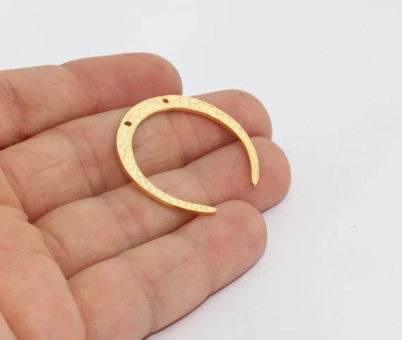24k Shiny Gold Plated Double Hole Crescent Pendant. Dimensions: 32x34mm Price is per piece. 24 carat gold plated on brass. A Quality product resistant to rust and tarnishing. For long-term use do not contact with chemicals and perfumes. Passed all tests does not contain harmful materials. Colors may vary depending on screen settings and ambient light.
