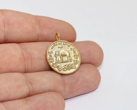 24K Shiny Gold Plated Elephant Pendant Elephant Dangle. Dimensions: 23x28mm Price is per piece. 24K gold plated on brass. A Quality product resistant to rust and tarnishing. Do not contact with chemicals and perfumes for long-term use. Passed all tests does not contain harmful materials. Colors may vary depending on screen settings and ambient light.