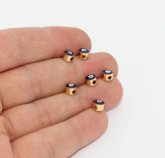 Shiny Gold Plated Evil Eye Bead Pendant Dimensions: 6mm. Package price. There are 5 products in 1 package. 24 carat gold plated on brass. A Quality product resistant to rust and tarnishing. Do not contact with chemicals and perfumes for long-term use. It has passed all tests and does not contain harmful materials. Colors may vary depending on screen settings and ambient light.