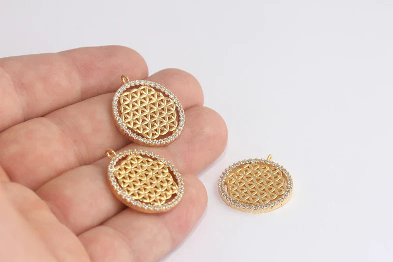 24K Shiny Gold Plated Flower Pendant. Dimensions: 22x26mm Price is per piece. 24K gold plated on brass. A Quality product resistant to rust and tarnishing. Do not contact with chemicals and perfumes for long-term use. Passed all tests does not contain harmful materials. Colors may vary depending on screen settings and ambient light.
