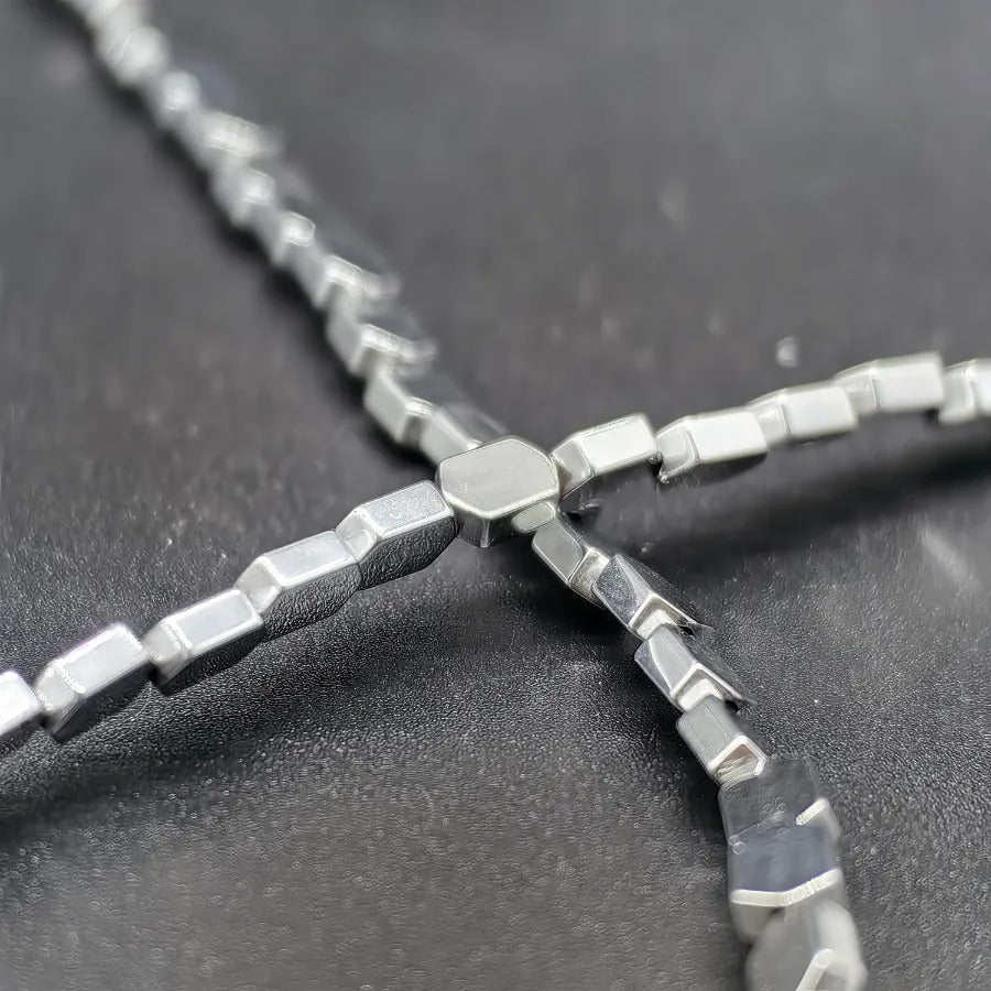 6 mm Silver Color Hexagonal Hematite Natural Stone.Dimensions: 2 mm x 6 mm.Sold in strands.Each strand contains approximately 73 hematite stones.It is a natural hematite stone.Hematite is a shiny natural stone with a metallic appearance, believed to affect the root chakra.It is thought to provide energy, courage, and joy to the user while relieving stress.Hematite stones can be used in the design of bracelets, necklaces, and earrings.